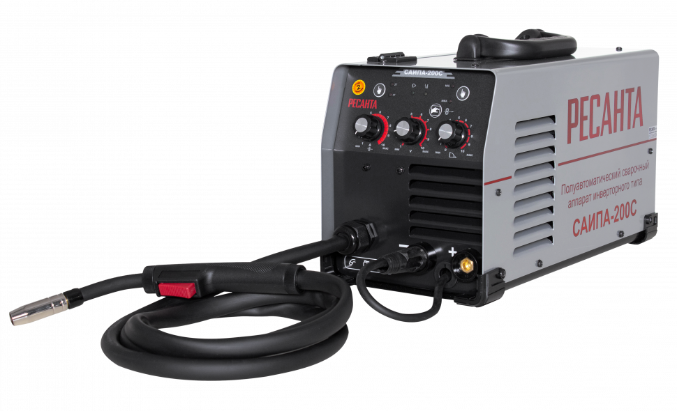 Сварочный аппарат инверторный полуавтоматический РЕСАНТА САИПА-200С с функцией ММА предназначен для ручной электродуговой сварки постоянным током проволокой в среде защитного газа - углекислого, аргона или их смеси. Применяется для высококачественной сварки низкоуглеродистых сталей, низколегированных и нержавеющих сталей, чугуна и других металлов в строительстве, монтажных и ремонтных работах различной степени сложности. Встроенная защита от перегрева защищает агрегат от поломки. Можно регулировать скорость подачи проволоки и сварочный ток, что позволяет добиться высокого качества сварного соединения.Среди сварочных аппаратов практичными, удобными и многофункциональными являются сварочные полуавтоматы марки Ресанта. Их положительной особенностью признана возможность без усиления дополнительными элементами качественно выполнять сварку как цветного, так и черного металлов. Считается, что полуавтоматическое оборудование весьма просто освоить даже новичку.Особенности и преимуществаДополнительно оборудована функция сварки ММА (помимо MIG/MAG). Таким образом полуавтомат подходит большему количеству покупателей, сомневающихся в выборе сварочного оборудования. Таким образом покупатель за вполне доступную цену получает аппарат обладающий двумя режимами работы.Класс защиты IP 21, то есть 'от крупных частиц и отвесных дождевых капель'.Защита от перегрева и пониженного напряжения сети, что позволяет уберечь аппарат от поломки.Горелка несъемная.Основное преимущество полуавтомата - это то, что аппарат автоматически подает расходные материалы, а точнее электродную проволоку, с помощью которой осуществляется зажигание дуги и сваривание металлоизделия. Данный агрегат получил название полуавтомата, так как позволяет лишь частично механизировать процесс сварки. В отличие от автоматической сварки, которая полностью выполняется запрограммированным оборудованием, в полуавтоматической сварке механизирован только процесс подачи проволоки. Тем не менее, такая механизация позволила значительно увеличить производительность: сварщику нет необходимости прерываться, чтобы заменить электрод, дуга горит более стабильно. Кроме того, сварочные полуавтоматы, в отличие от автоматов, позволяют непосредственно контролировать процесс образования шва. А значит, такие соединения получаются более качественными и требуют меньших доработок.Существуют как универсальные полуавтоматы, так и обычные. Объединяет их то, что все они оснащены механизмом подачи электродной проволоки. Однако, универсальные сварочные полуавтоматы отличаются тем, что имеют более широкое применение, чем обычные устройства. Универсальные полуавтоматы могут применяться как для сварки в среде защитных газов в режимах MIG/MAG, так и для сварки самозащитной проволокой и пр. Режим MIG применяется для сваривания в среде инертных газов, например, аргон или гелий. MAG-сварка проводится в среде активных газов. Кроме этого, некоторые модели имеют режим MMA. Этот режим можно использовать при работе как с черными, так и с цветными металлами. В данном случае полуавтомат используется для осуществления ручной дуговой сварки, которая производится штучными электродами. Данный вид работ проводится при постоянном токе, электронная начинка сама управляет сварочным током, в результа