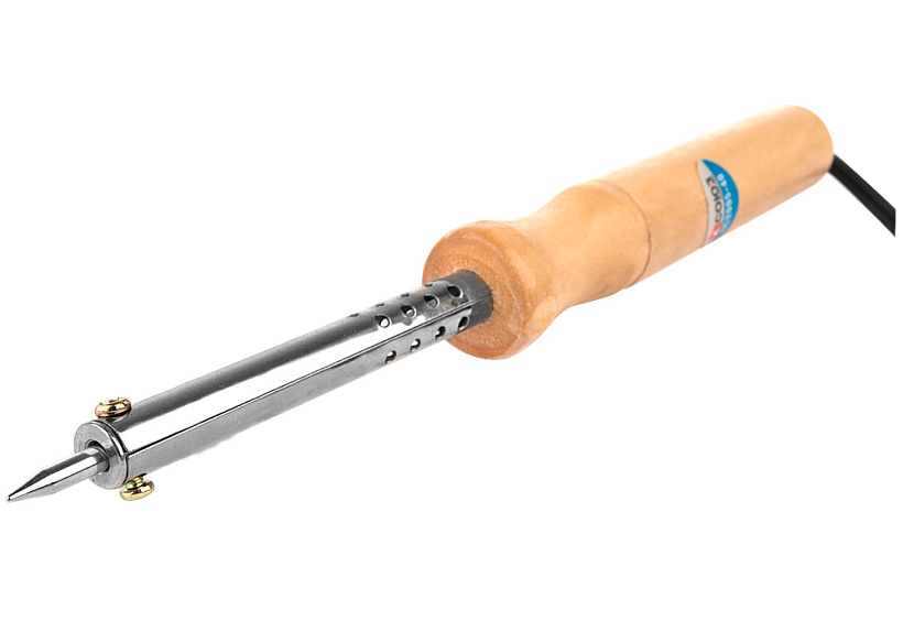 Паяльник с деревянной ручкой обладает небольшими размерами и весом, что удобно при его непосредственной эксплуатации, хранении, а также при транспортировке. Корпус инструмента выполнен из высокопрочных материалов, что обеспечивает ему устойчивость к ударным воздействиям и, как следствие, обеспечивает продолжительный рабочий ресурс. Материал жала - никель, - это дает возможность быстрой и качественной спайки различных электронных элементов.