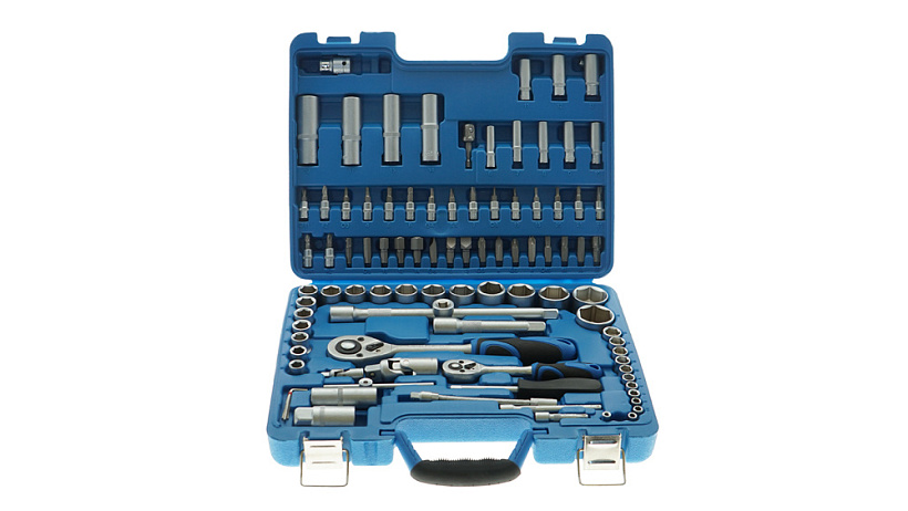 - Особенности : Прочные и износостойкие предметы из хромованадиевой стали долго прослужат даже при усиленных нагрузках. Адаптеры 1/2“ и 1/4” в наборе позволят использовать торцевые головки совместно с шуруповертом, ускоряя процесс работы. Двухкомпонентная рукоятка трещоток обеспечивает надежный хват и комфортную работу с инструментом. Прочный пластиковый кейс с металлическими замками и петлями обеспечивает полную сохранность ваших инструментов и комфортную транспортировку в дороге.