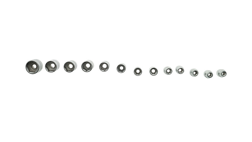13 х Головки торцевые 1/4": 4, 4.5, 5, 5.5, 6, 7, 8, 9, 10, 11, 12, 13, 14 мм,