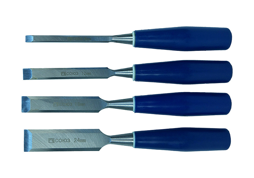 1063-02-H4C Набор стамесок, 6, 12, 18, 24 мм, УГЛЕРОДИСТАЯ СТАЛЬ, 50 HRC, СОЮЗ