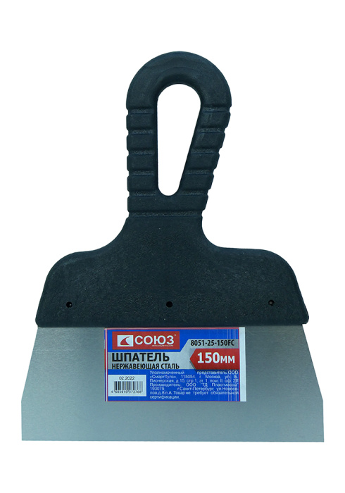 8051-25-150FC Шпатель, 150мм, нержавеющая сталь, пластиковая рукоятка, СОЮЗ