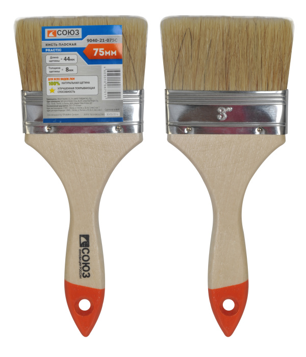 Кисть плоская ''Практик'' 3'' (75 мм), натуральная щетина СОЮЗ 9040-21-075С