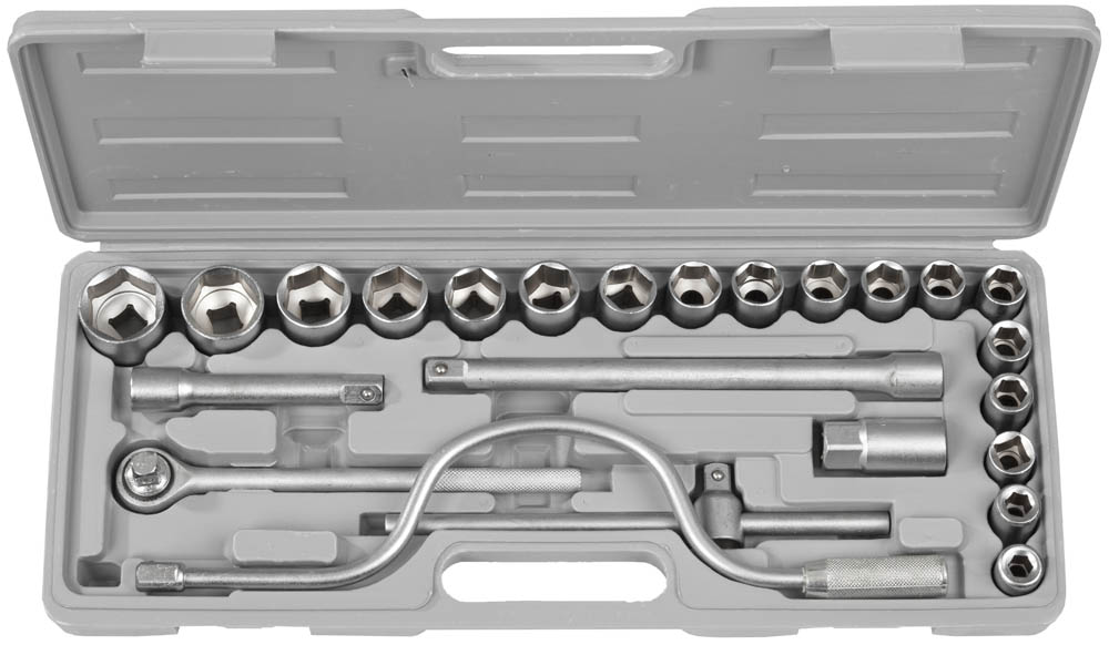 Набор инструментов торцовые головки STAYER 27587-H24, предназначен для монтажа и демонтажа резьбовых соединений при ремонте автомобилей и других изделий. Высококачественная Cr-V сталь. Хромированное покрытие.