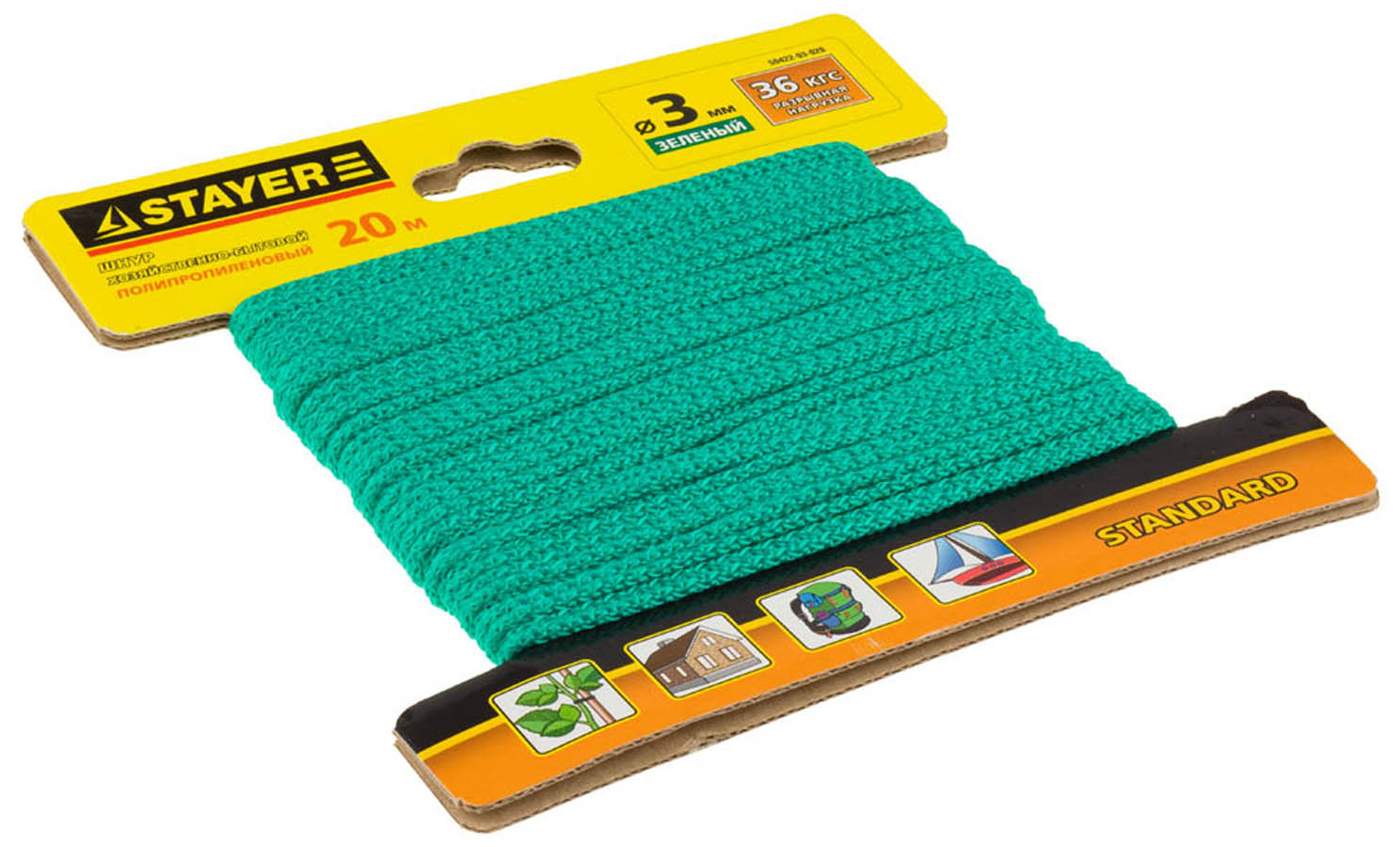 Шнур хозяйственно-бытовой STAYER 50422-03-020, применяется в сельском хозяйстве, быту, туризме, рыболовстве, для декоративной отделки, а так же для изготовления спортивного инвентаря. Выдерживает высокие нагрузки. Не подвержен гниению и плеснивению. Обладает высокой стойкостью к истиранию и положительной плавучестью.