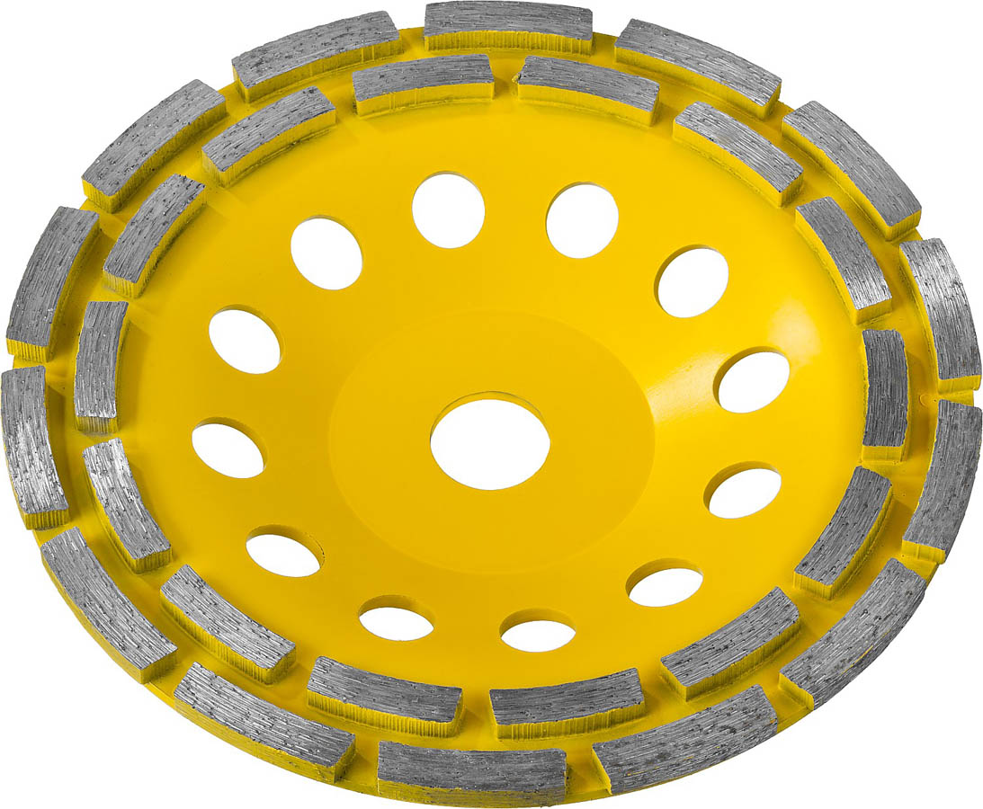 Алмазная чашка STAYER 33381-180, применяется на УШМ для шлифования поверхностей изделий из бетонных материалов, гранита, природного и искусственного камня. Двойная сегментная рабочая поверхность алмазоносного слоя для большого объема работ. Штампованное основание. Отверстия для естественного охлаждения чашки во время шлифовки.