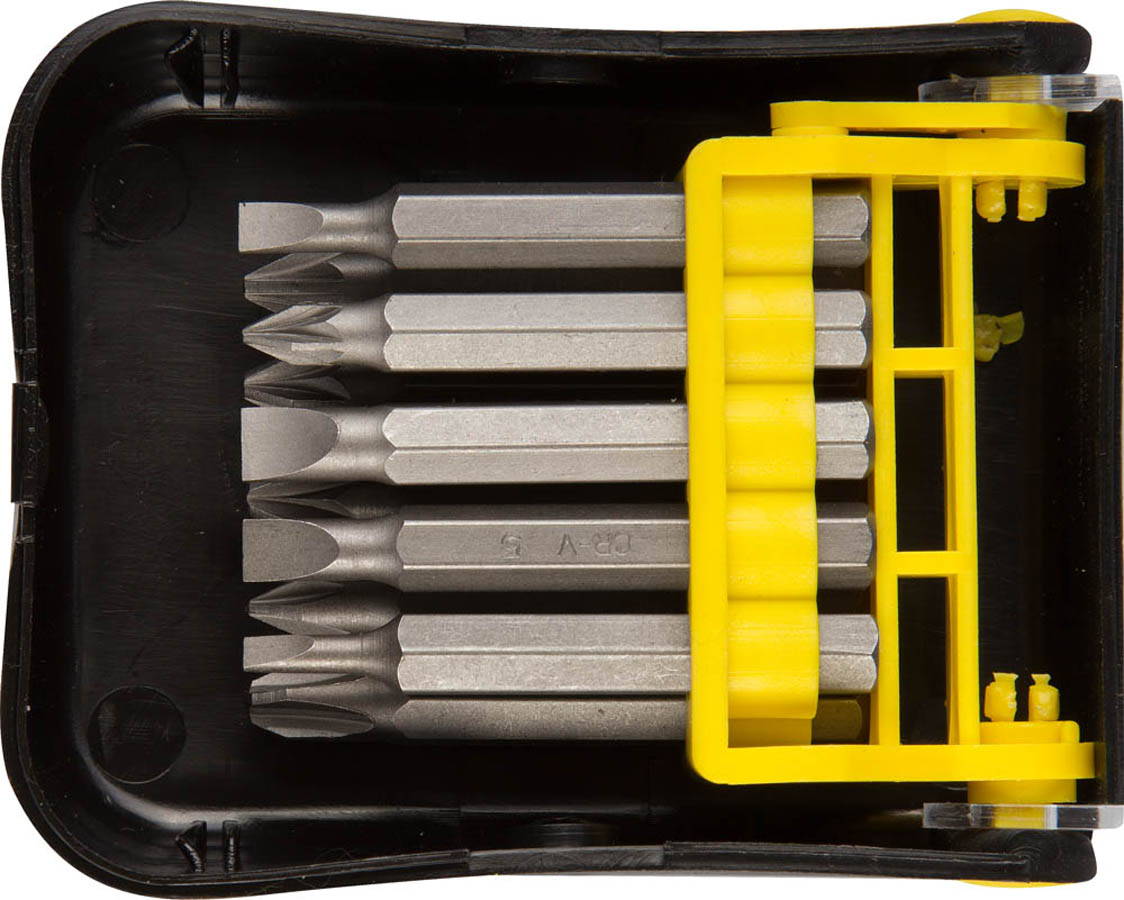 Набор бит STAYER 26085-H10, предназначен для слесарных, монтажных и ремонтных работ. Применяется для монтажных и демонтажных работ. Биты из хромованадиевой стали обладают повышенной прочностью и долговечностью. Удобный пластиковый бокс обеспечивает надежную фиксацию и комфортную работу с битами
