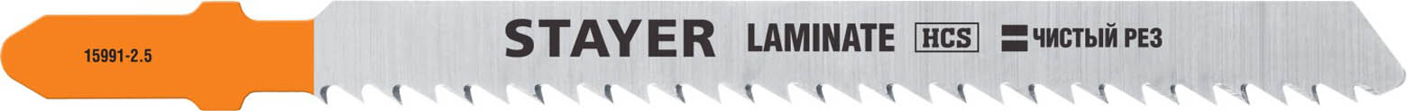 STAYER по ламинату, дереву, EU-хвостовик, шаг 2.5 мм, 75 мм, 2 шт., полотна для эл/лобзика HCS Laminate 15991-2.5_z02 Professional