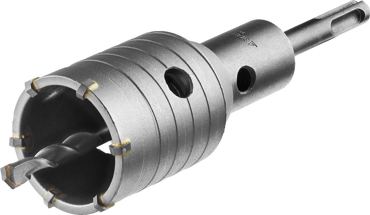 Буровая коронка STAYER 29190-50, предназначена для сверления отверстий в бетоне, кирпиче, природном и искусственном камне, а также в плотных известняках. Твердосплавные зубья из сплава ВК8 позволяют эффективно дробить обрабатываемый материал. Специальная спиралевидная форма корпуса коронки из высокопрочной стали уменьшает трение о стенки отверстия, ускоряет отвод шлама и повышает срок службы инструмента. Коронка по бетону с полной оснасткой. Державка SDS-plus из легированной стали. Конусная посадка центрирующего сверла позволяет быстро демонтировать сверло в случае необходимости. Резьбовая посадка М22 обеспечивает надежное крепление коронки с державкой. Износостойкое покрытие защищает от коррозии.