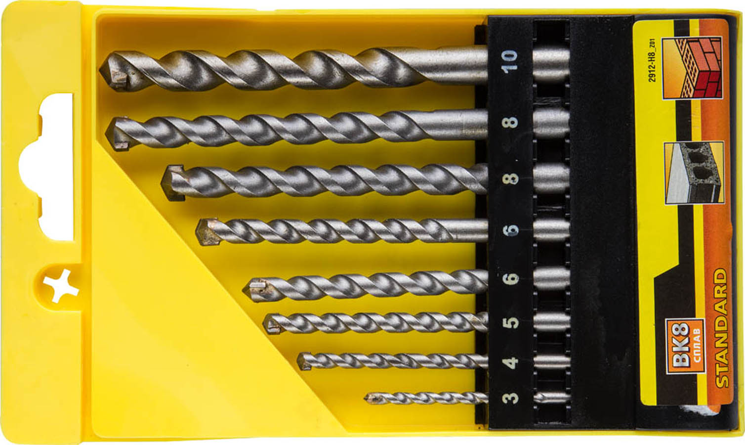 STAYER 8 шт: Ø 3-4-5-6-6-8-8-10 мм, наконечник ВК8, набор ударных сверл по бетону 2912-H8_z01