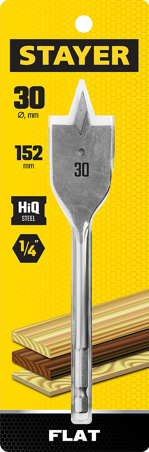 STAYER FLAT 30x152мм, сверло по дереву перовое 2950-30_z01 Master