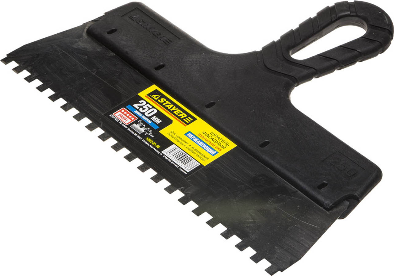 STAYER 250 мм, нержавеющая полотно, пластмассовая рукоятка, шпатель зубчатый 1009-25-06