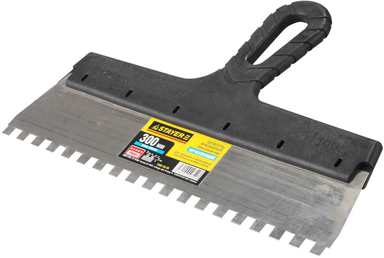 STAYER 300 мм, нержавеющая полотно, пластмассовая рукоятка, шпатель зубчатый 1009-30-08