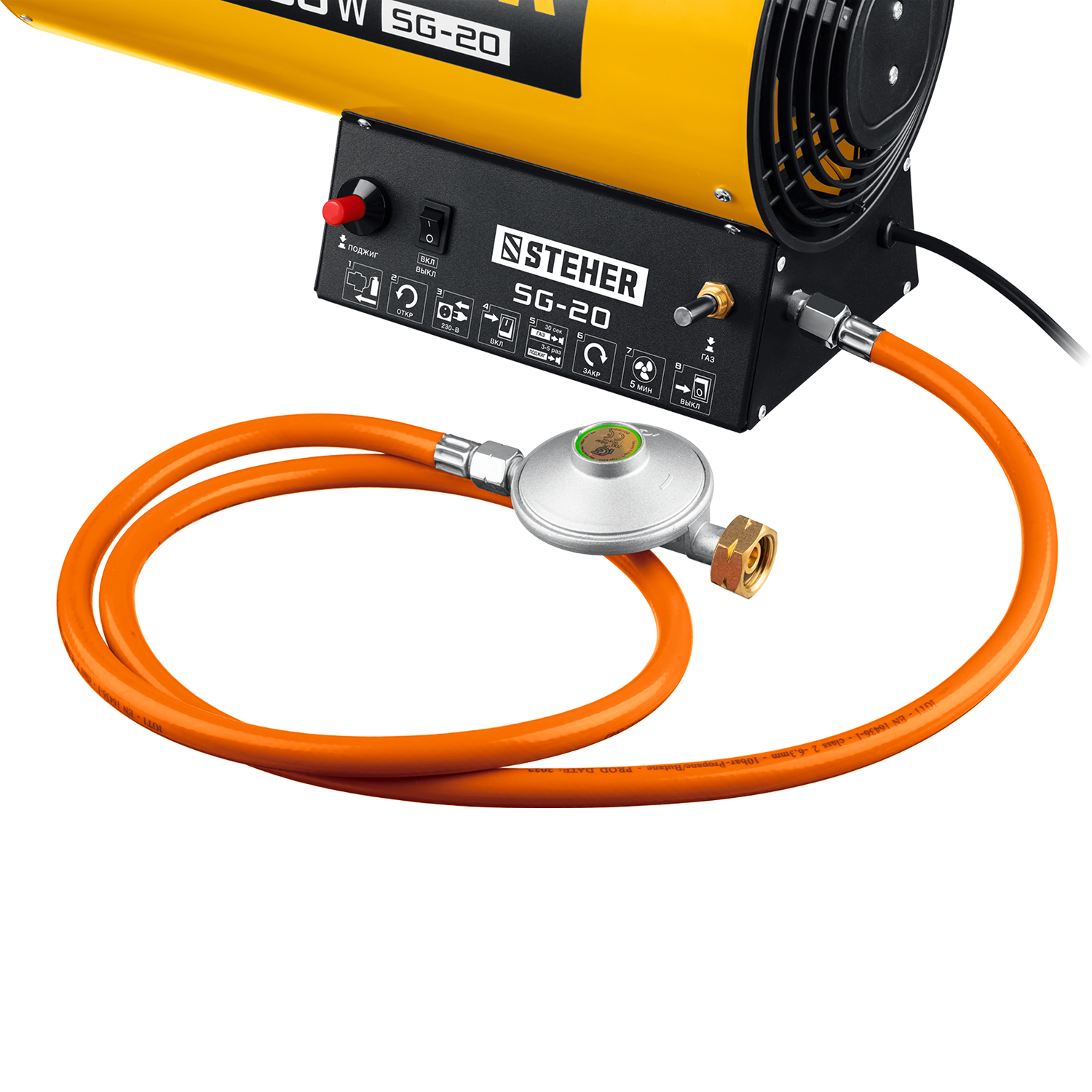 Газовая тепловая пушка STEHER SG-20, предназначена для генерации горячего воздуха, который может быть использован для обогрева, сушки промышленных, складских, вспомогательных помещений и т. д. Компактный корпус, контроль наличия пламени, биметаллический термопредохранитель и двойное теплоэкранирование. Армированный газовый шланг с редуктором давления в комплекте. Имеется пьезоподжиг.