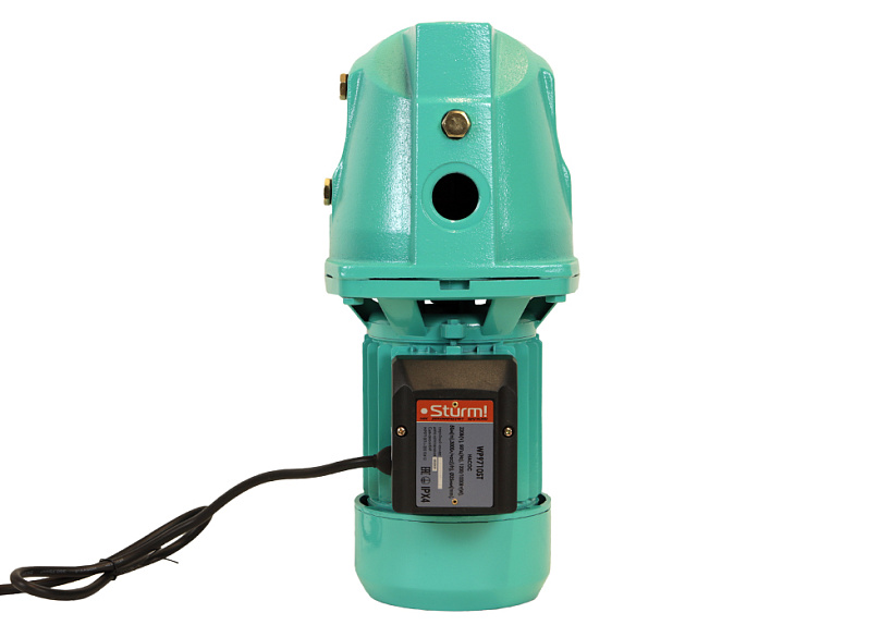 Sturm WP9710ST – поверхностный центробежный самовсасывающий насос – предназначен для перекачки чистой воды из различных емкостей, бассейнов, колодцев, скважин, а также природных или искусственных водоемов, позволяя организовать эффективную систему полива приусадебных и садовых территорий. Насос удобен в использовании и максимально прост в монтаже, так как не требует непосредственной установки в водную среду, размещаясь рядом с источником. При мощности электромотора в 1200 Вт модель характеризуется высокой производительностью – способна перекачивать за час до 3000 литров жидкости и обеспечивать ее подачу на высоту до 50 метров, осуществляя забор с глубины до 8 метров. Максимальная температура воды для насоса не должна превышать 40 градусов. Для обеспечения лучших показателей надежности, износостойкости и низкого уровня шума корпус Sturm WP9710ST изготовлен из чугуна, а крыльчатка выполнена из антифрикционного полимера PPO, стойкого к воздействию агрессивной среды, что способствует долговечности работы насосной части. Модель имеет встроенную термозащиту – она автоматически отключает насос при перегреве и позволяет возобновить работу при остывании до рабочей температуры. Предусмотрена возможность использования в автономных системах – для этого в корпусе есть соответствующие монтажные отверстия для манометра и реле давления.