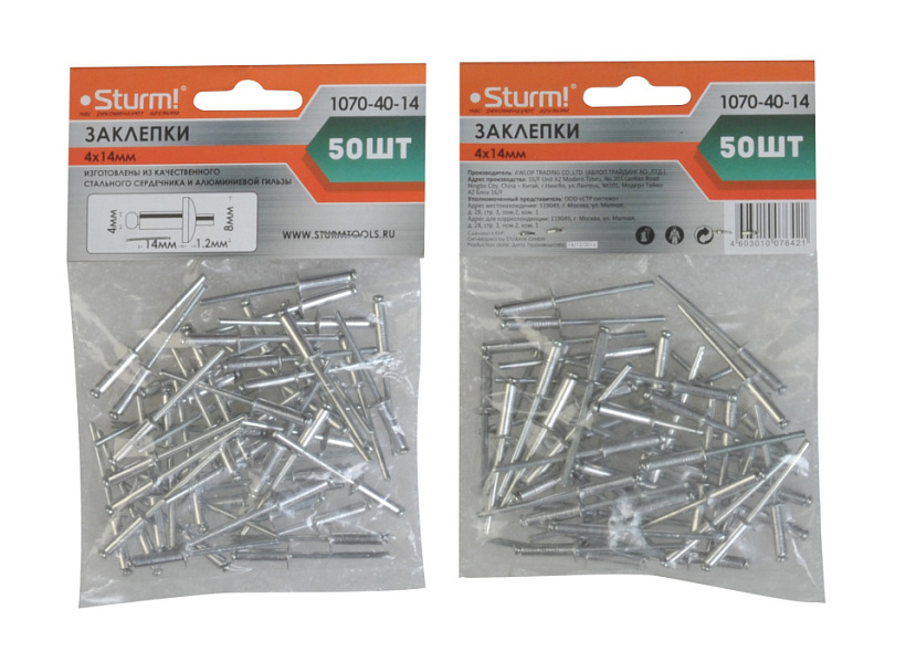 Заклепки 4,0 х 14 мм, 50 шт. Sturm! 1070-40-14