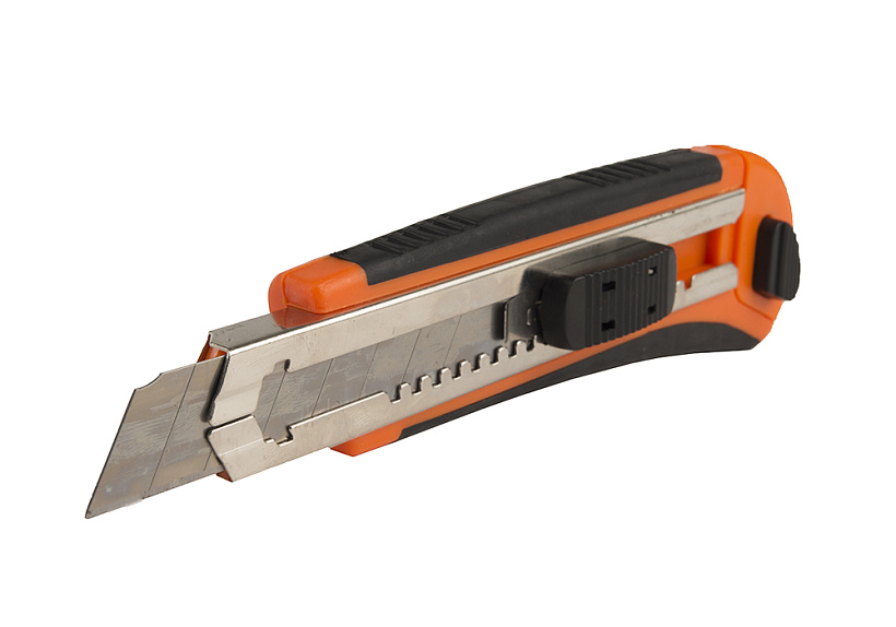 Обрезиненная рукоятка обеспечивает полный контроль инструмента и комфорт при работе с ним. Сегментированное лезвие из высококачественной углеродистой стали SKS позволяет в любой момент пользоваться острым ножом.