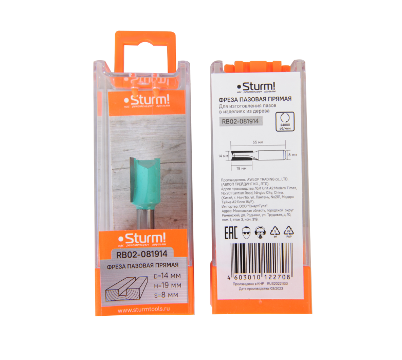 RB02-081914 Фреза пазовая прямая с двойным лезвием DxHxL 14x19x55 мм, хв.8 Sturm!