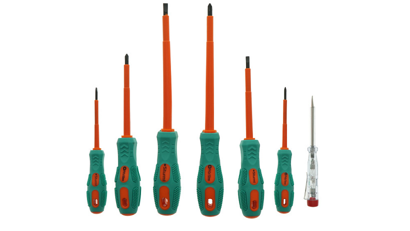 1040-03-BSE7 Набор отверток диэлектрических, 7 шт, CrV, тканевый кейс, Sturm! Унивесальный набор отверток для домашнего использования. Рабочие части изготовлены из хромованадиевой стали, что позволяет работать при высоких нагрузках.Удобная тканевая сумка для хранения.