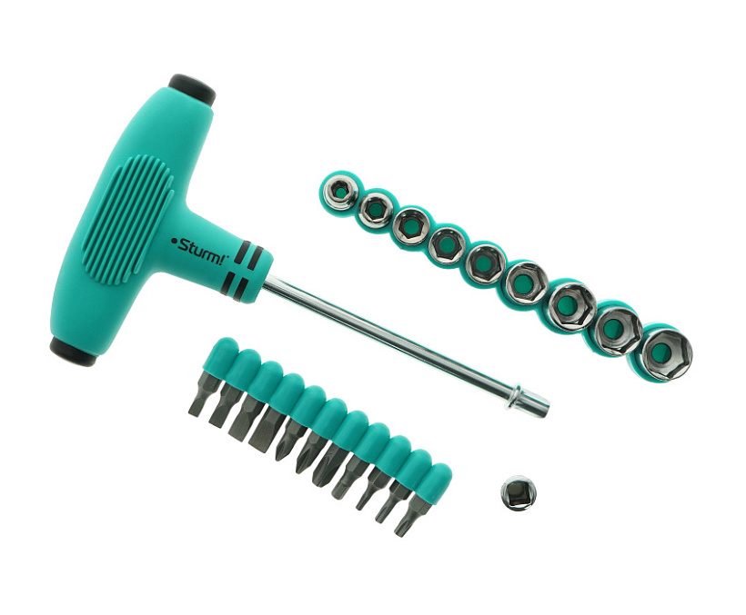Особенности : Стержень инструмента изготовлен из хром-ванадиевой стали для большей прочности, отлично подходит для работ даже с тугими крепежными соединениями, рабочая часть не деформируется при больших нагрузках, не ржавеет и служит долгие годы. Магнитный держатель предотвращает выпадение насадок во время работы. Биты и головки поставляются в резиновом картридже. |Вид упаковки : Блистер |Назначение : Отвертка Sturm! со сменными насадками - это готовый комплект инструмента, имеющего несколько сменных головок с разной формой и размером, который заменяет целый ящик инструментов. В качестве оснастки используются биты, предназначенные для разного вида винтов, саморезов и другого крепежа со шлицевой головкой, а также торцевые головки для работы с гайками и болтами. |Материал : хромованадиевая сталь |Комплектация : Т-образная ручка-адаптор, биты: SL4, SL5, SL6, PH1, PH2, PH3, HEX4 T10, Т15, Т20, головки: 5,6, 7, 8, 9, 10, 11, 12, 13 |Артикул : 1040-09-S21 |Производитель : Sturm! |Назначение : Отвертка Sturm! со сменными насадками - это готовый комплект инструмента, имеющего несколько сменных головок с разной формой и размером, который заменяет целый ящик инструментов. В качестве оснастки используются биты, предназначенные для разного вида винтов, саморезов и другого крепежа со шлицевой головкой, а также торцевые головки для работы с гайками и болтами. |Материал : хромованадиевая сталь |Вид упаковки : Блистер |Габариты в упаковке (ДхШхВ, см) : 27x15x3 |Основной штрихкод : 4603010070405 |Комплектация : Т-образная ручка-адаптор, биты: SL4, SL5, SL6, PH1, PH2, PH3, HEX4 T10, Т15, Т20, головки: 5,6, 7, 8, 9, 10, 11, 12, 13 |