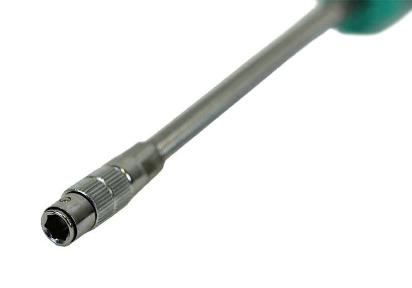 Гибкая рабочая часть позволяет выполнять работы под различным углом,