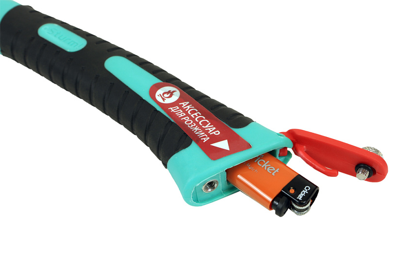 Уникальная запатентованная система позволяет хранить зажигалку прямо в рукоятке, благодаря чему она будет всегда под рукой. Переход от заготовки дров к розжигу стал максимально быстрым.