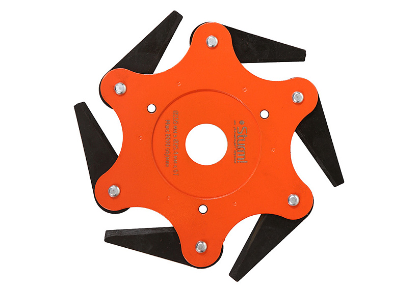 - Особенности : Заточка с двух сторон, что позволяет перевернуть диск и использовать его снова! Ножи закреплены подвижно на заклепках, при встрече с препятствием поворачиваются, скользя по касательной, что снижает нагрузку на инструмент Наиболее эффективен для резки бурьяна, сухой травы, толстых сорняков Используйте только на триммерах высокой и средней мощности