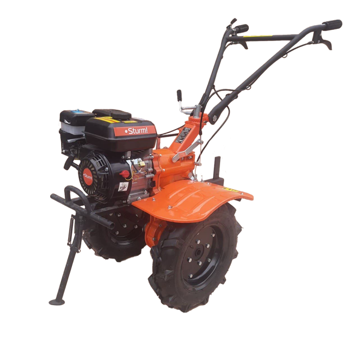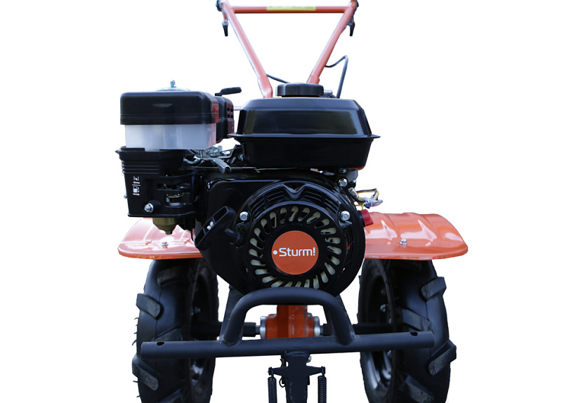 Сцепной узел и вал отбора мощности позволяют использовать различное навесное оборудование, как сзади, так и спереди мотоблока.