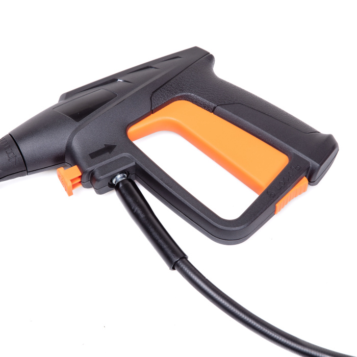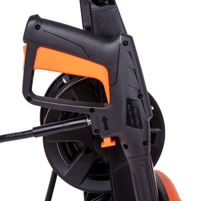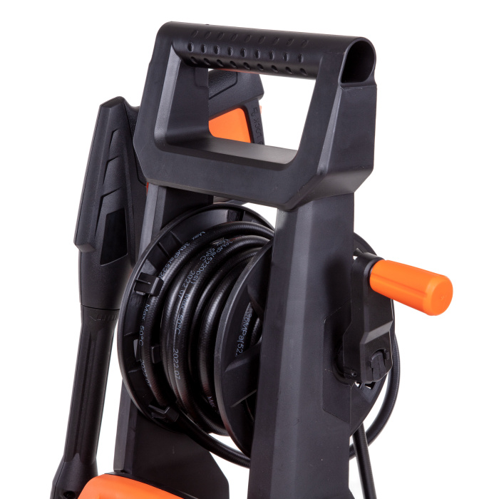- Преимущества : Увеличенный до 7м эластичный шланг высокого давления на барабане позволяет свободно мыть автомобиль, чистить крыши дачных построек и другие объекты не передвигая мойку. Благодаря своей эластичности шланг легко разматывается и сматывается на барабан, не спутывается во время работы Быстросъемные соединения QuickConnect на шланге и оснастке для легкого подключенияУвеличенная рабочая зона 452 м2 засчет общей длины 7-ми метрового шланга высокого давления и сетевого кабеля длиной 5 мТрёх-плунжерная алюминиевая помпа обеспечивает высокую производительность 450 л/час и высокое давление до 165 бар необходимое для удаления стойких загрязнений. Входной и выходной патрубки помпы также изготовлены из алюминия, что повышает механическую прочность изделияФункция самовсасывания и встроенный фильтр для использования любого источника воды, в том числе без источника давления (водопровод, емкости с водой, водоемы)
