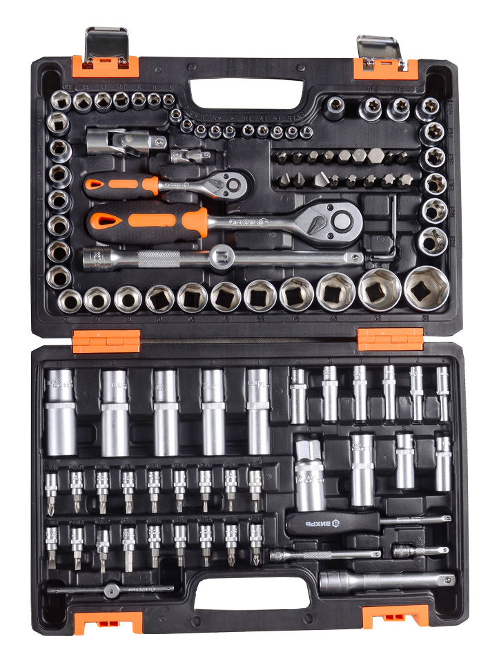 Набор инструмента ВИХРЬ предназначен для ремонта автомобилей, мотоциклов, садовой и другой техники. Подходит как для использования на станциях технического обслуживания, так и в бытовом применении дома или на даче. Инструмент изготовлен в соответствии с международными стандартами. Головки и комбинированные ключи изготовлены из хромованадиевой стали, придающей инструменту высокую твердость и легкость. Биты, биты-вставки и отвёртки производятся из стали S2, улучшающей характеристики крутящего момента и твёрдости. Все наборы упакованы в ударопрочный кейс, изготовленный из жесткого противоударного пластика, с металлическими застёжками. Повышенные показатели прочности, крутящего момента и износостойкости.Комплектация:удлинители 1/2” и 1/4'', отвёртка-держатель 1/4'', головки свечные под ключ, головки торцевые удлинённые 1/4'' и TORX 1/2'' и 1/2'', биты и адаптер для бит 5/16'', головки торцевые 1/2'' и 1/4'' и TORX 1/4'', вороток 1/4'' и 1/2'', биты с торцевыми головкам, ключ трещоточный 1/2'' и 1/4'', кардан 1/4'' и 1/2''.