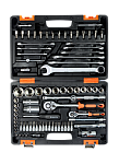 Набор инструмента ВИХРЬ предназначен для ремонта автомобилей, мотоциклов, садовой и другой техники. Подходит как для использования на станциях технического обслуживания, так и в бытовом применении дома или на даче. Инструмент изготовлен в соответствии с международными стандартами. Головки и комбинированные ключи изготовлены из хромованадиевой стали, придающей инструменту высокую твердость и легкость. Биты, биты-вставки и отвёртки производятся из стали S2, улучшающей характеристики крутящего момента и твёрдости. Все наборы упакованы в кейс, изготовленный из жесткого противоударного пластика, с металлическими застёжками.Комплектация:Ключ трещоточный: 1/4'', 1/2''Головки торцевые 1/2'': 14 ,15, 16, 17, 18, 19, 20, 22, 24, 27, 30, 32 ммГоловки торцевые 1/4'': 4, 4.5, 5, 5.5, 6, 7, 8, 9, 10, 11, 12, 13, 14 ммУдлинитель гибкий отверточная рукоятка: 1/4''Ключи комбинированные: 8, 10, 11, 12, 13, 14, 17, 19, 22 ммКардан: 1/2''Биты с торцевой головкой 1/4'' и вставкой: Н3, Н4, Н5, Н6, Т8, Т10, Т15, Т20, Т25, Т30, SL4, SL5.5, SL7, РН1, РН2, PZ1, PZ2Удлинитель 1/2'': 125, 250 ммУдлинитель 1/4'': 50, 100 ммАдаптер для бит 1/4'': 25 ммГоловки свечные: 16, 21 ммВороток Т-образный: 1/4''Кардан: 1/4''Адаптер: 3/8'', 1/2''Адаптер: 1/2'', 5/16''Адаптер: Н8, Н10, Н12, Н14, Т40, Т45, Т50, Т55, SL8, SL10, SL12, РН3, РН4, PZ3, PZ4Отвертка-держатель для бит: 1/4''Кейс: морозостойкий
