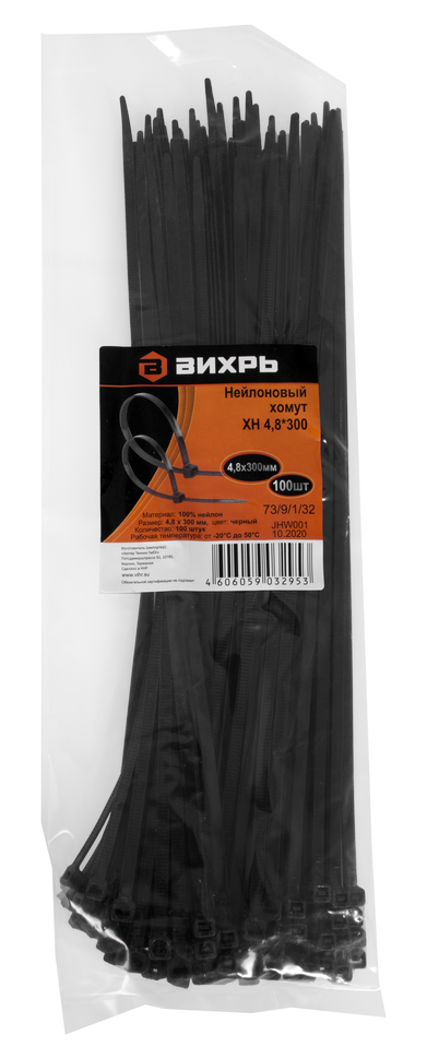 Хомуты нейлоновые (стяжки) черные 100 шт. Вихрь 4,8*300 Ч