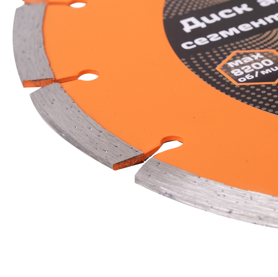 Алмазный отрезной диск Вихрь Стандарт сегментный 180 x 22.2 мм - это универсальный отрезной диск для угловых шлифовальных машин, который предназначен для сухой резки различных материалов, таких как гранит, бетон, кирпич и камень. Благодаря прорезям в сегментах диска, процесс резки осуществляется с эффективным выбросом отходов, что позволяет снизить нагрузку на инструмент и повысить точность работы. Данная модель подходит для использования на различных типах шлифовальных машин и может использоваться как в профессиональных, так и в бытовых целях. Максимальное число оборотов в минуту: 8 200 об/мин. Преимущества данного диска включают высокую скорость и точность резки, а также отсутствие необходимости в дополнительном охлаждении.