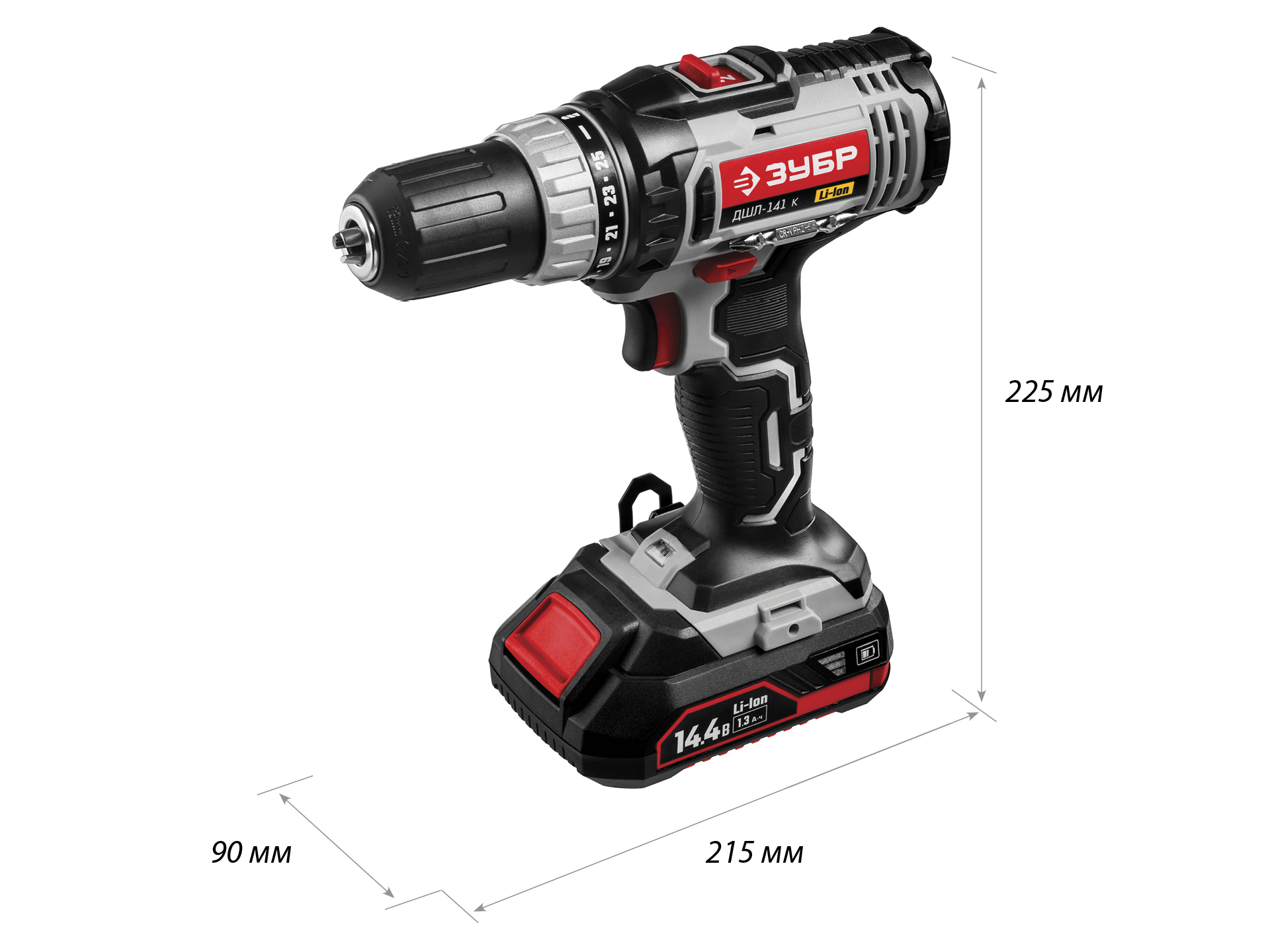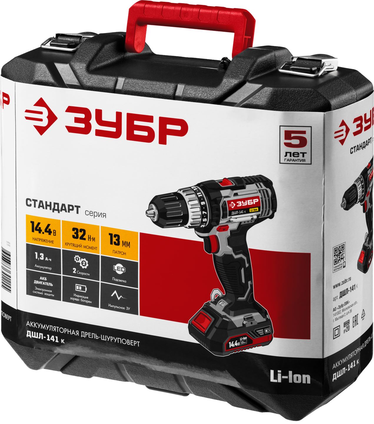 ЗУБР Li-Ion, 14.4 В, кейс, дрель-шуруповерт ДШЛ-141 К Стандарт