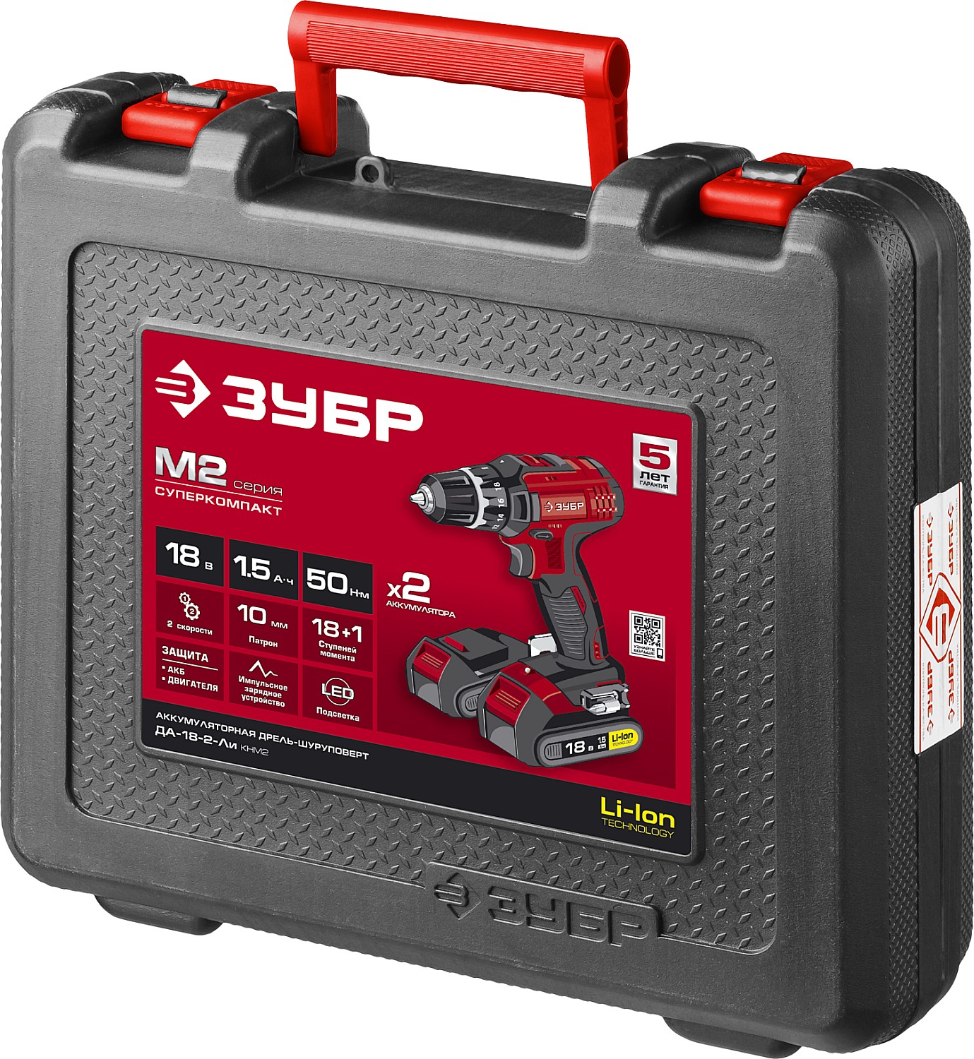 ЗУБР Li-Ion 18 В, 2 АКБ дрель-шуруповерт ''СУПЕРКОМПАКТ М2'', ДА-18-2-Ли КНМ2 Мастер