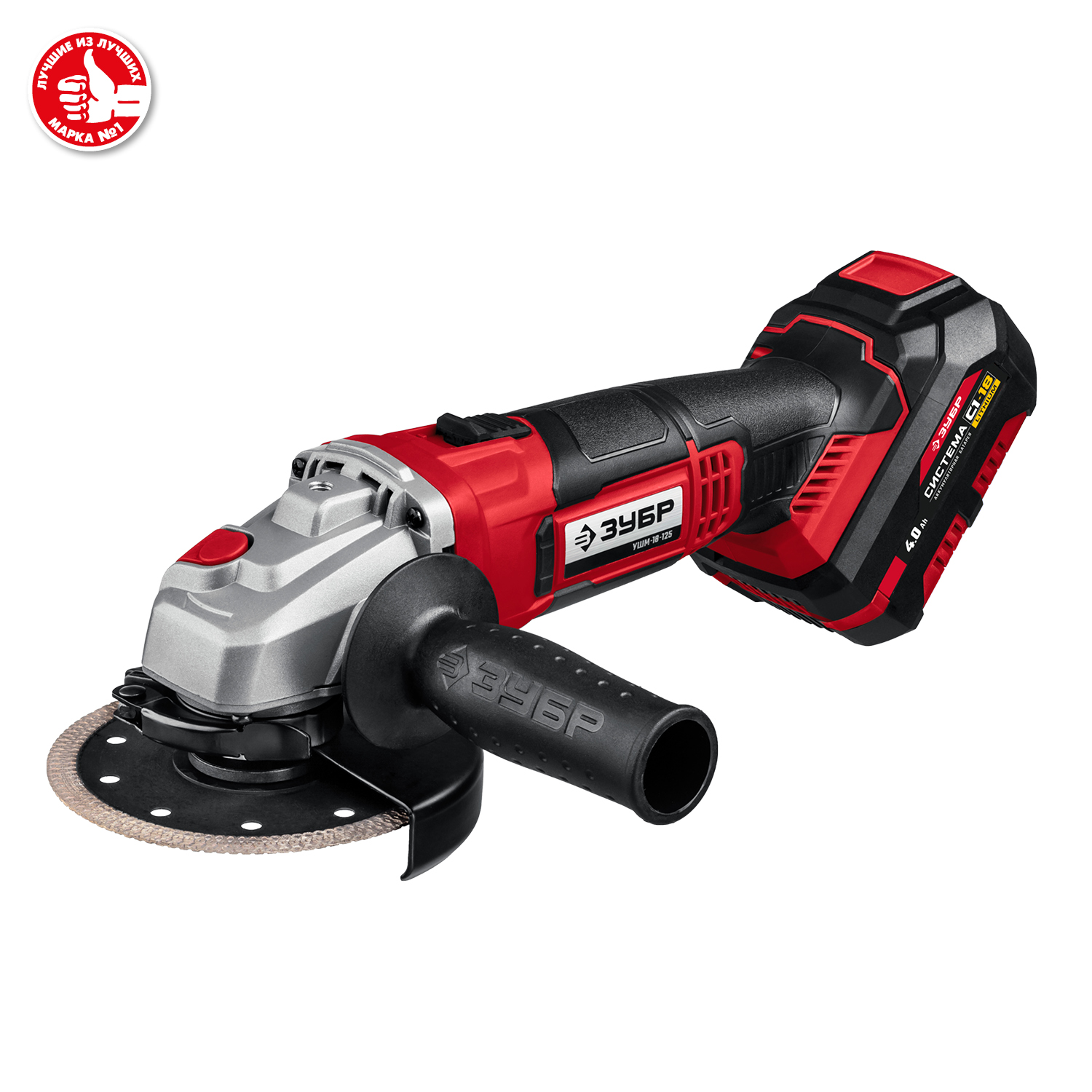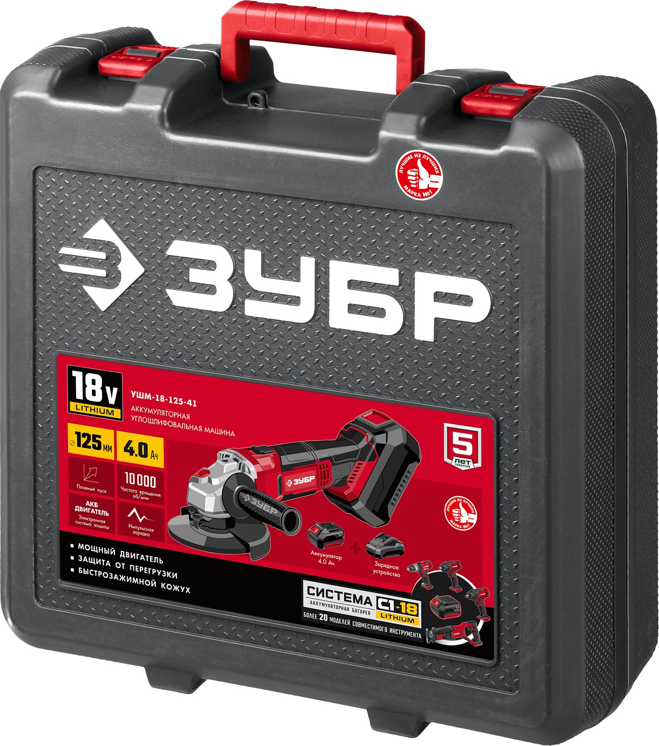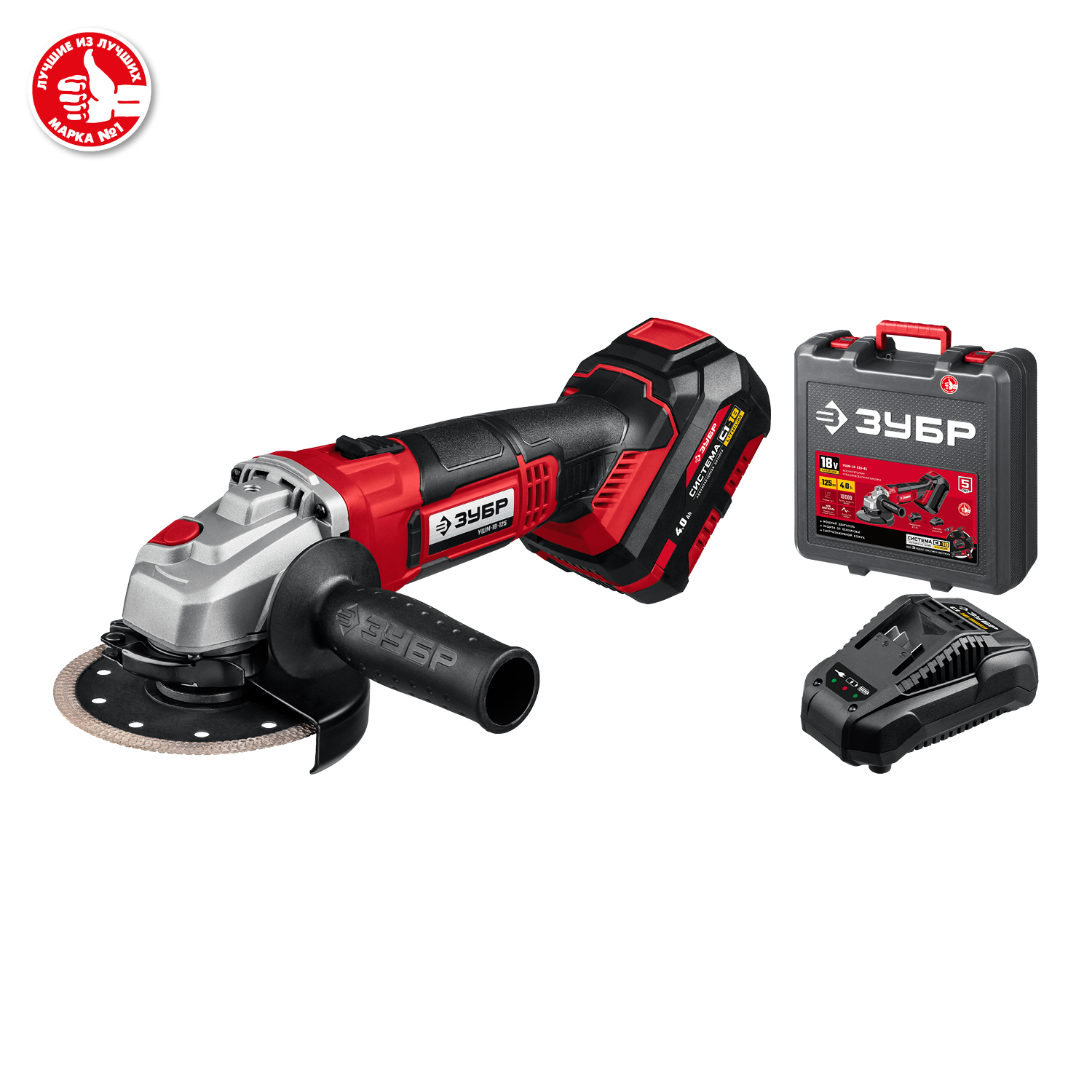 ЗУБР 18В, 1 АКБ (4Ач), в кейсе, углошлифовальная машина УШМ-18-125-41 Мастер