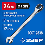ЗУБР 24 мм, комбинированный гаечный ключ трещоточный 27074-24