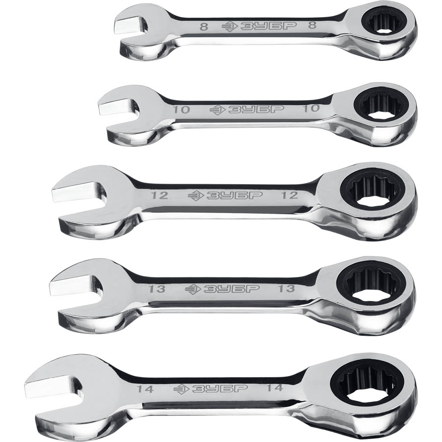 ЗУБР 5 шт, 8 - 14 мм, набор комбинированных гаечных ключей трещоточных укороченных 27103-H5 Профессионал