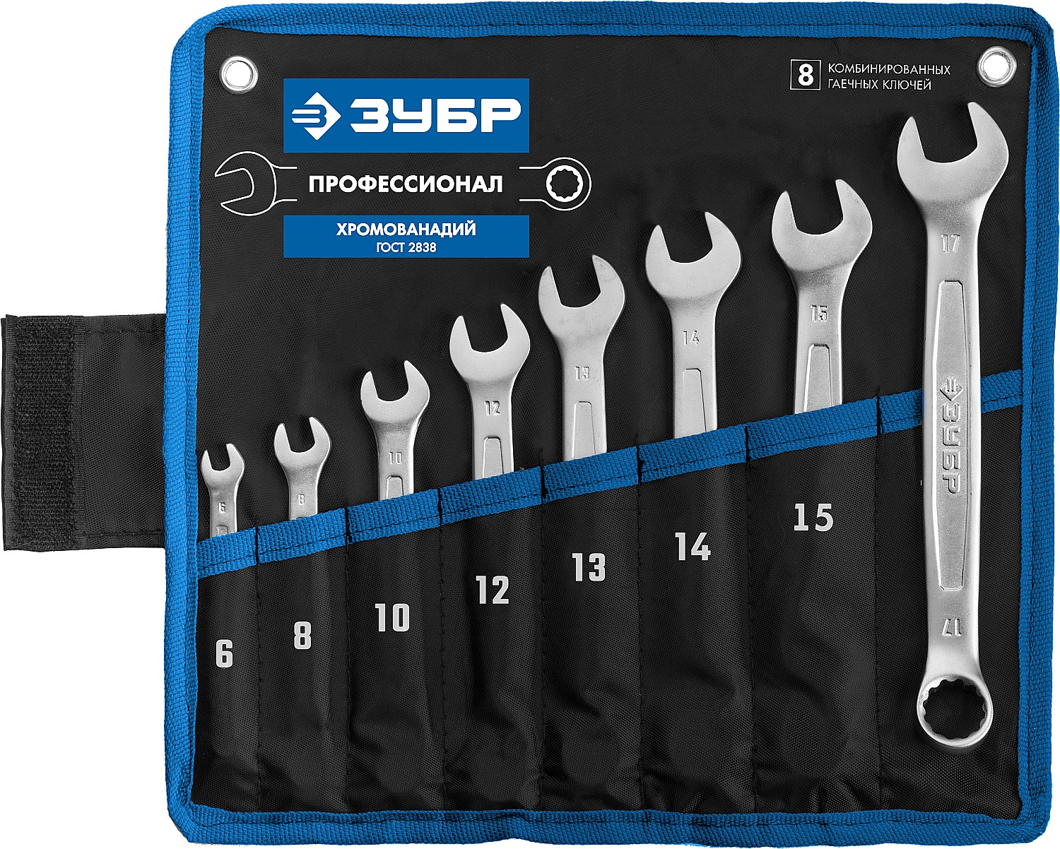 ЗУБР 8 шт, 6 - 17 мм, набор комбинированных гаечных ключей 27087-H8_z01 Профессионал
