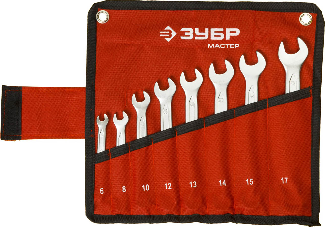 ЗУБР 8 шт, 6 - 17 мм, набор комбинированных гаечных ключей 27087-H8