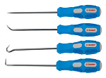 Набор инструментов ЗУБР 21553-H4, предназначен для слесарных работах, ремонте и обслуживании машин и оборудования. Крючки изготовлены из нержавеющей стали и закалены для длительного срока службы. Эргономичные противоскользящие двухкомпонентные рукоятки оптимальной формы обеспечивают надежный и комфортный захват. Двусторонние стержни из хромованадиевой стали. Цанговый держатель обеспечивает быструю и надежную замену стержней, а так же позволяет регулировать их длину. Адаптер для торцовых головок с шариковым держателем. Эргономичная двухкомпонентная рукоятка. Затыльник рукоятки свободно вращается, что обеспечивает легкое и удобное закручивание и повышает точность выполнения работ.