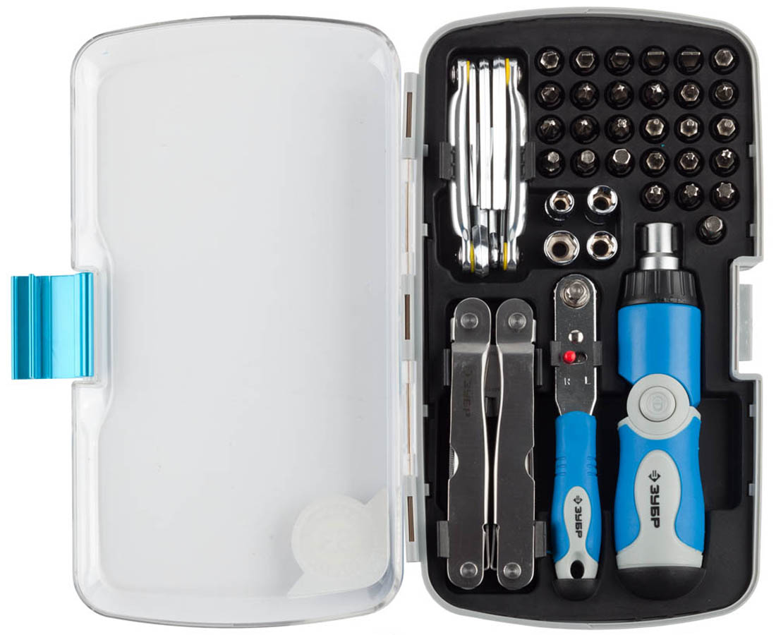 ЗУБР 53 шт., набор слесарно-монтажный и многофункциональный инструмент в пластмассовом боксе 25290-H53 Профессионал