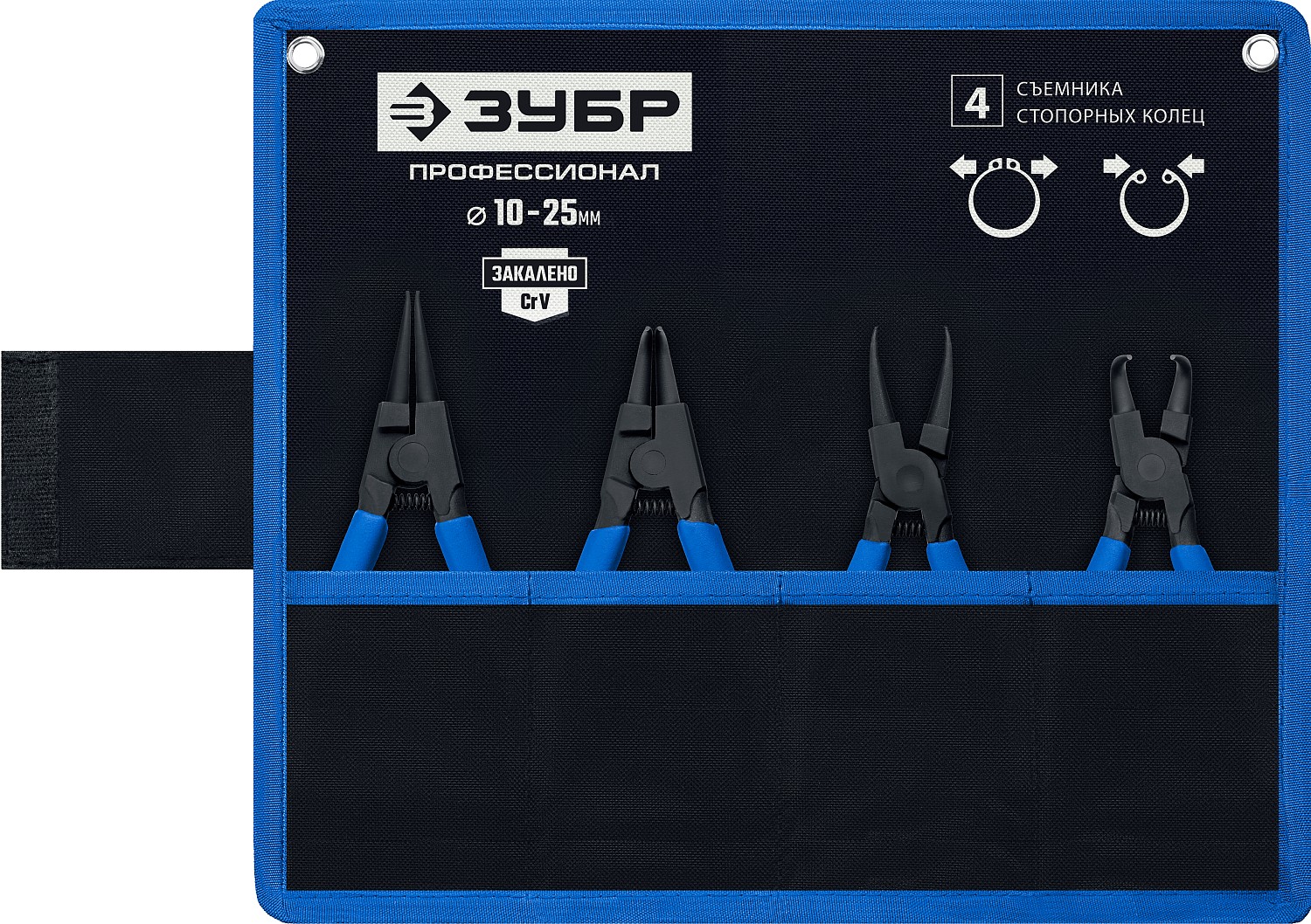 ЗУБР 4 шт., 130 мм, набор съемников стопорных колец 22825