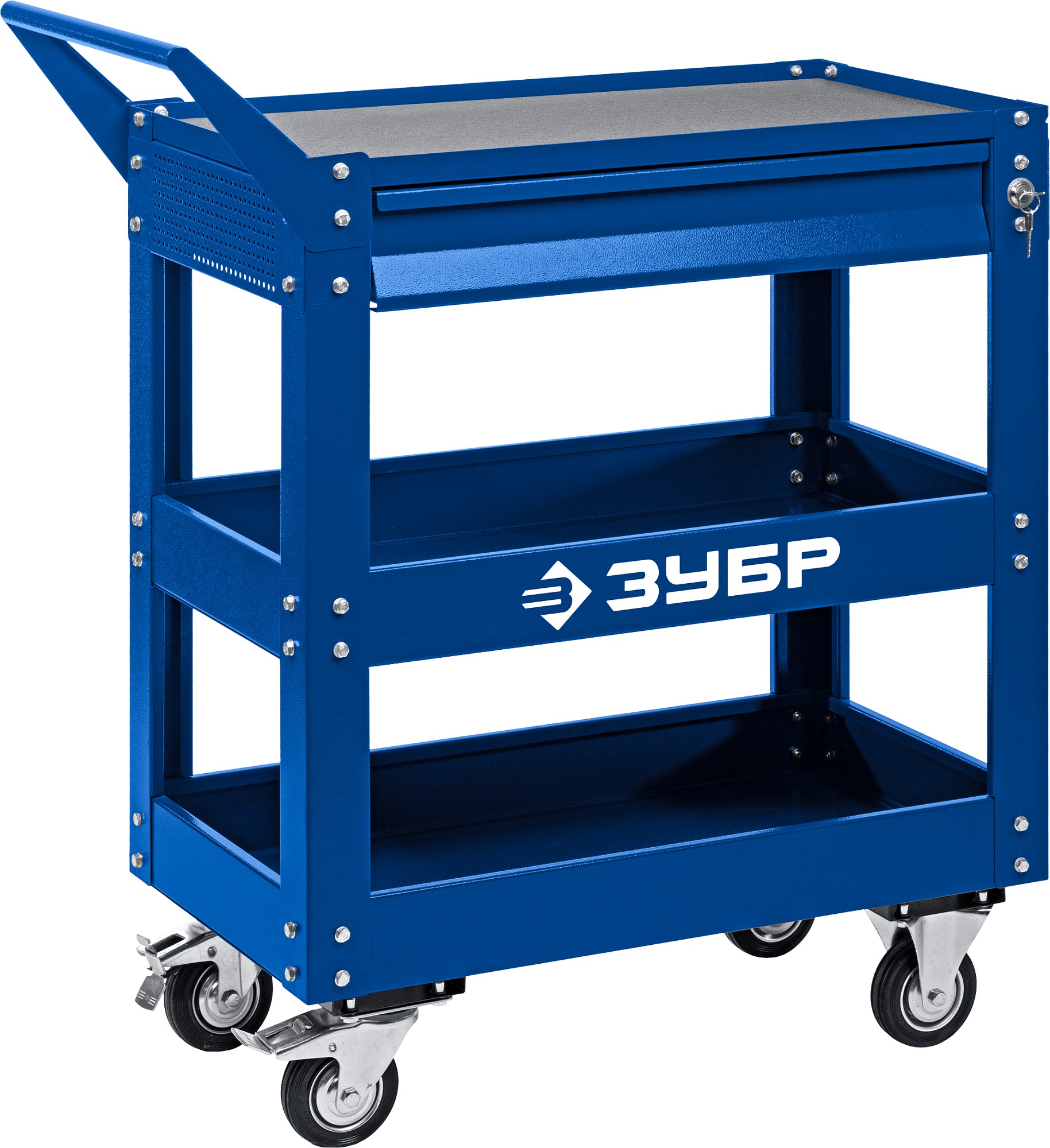 ЗУБР 1 ящик + 2 полки, 820х405х955 мм, инструментальная тележка 38914 Профессионал
