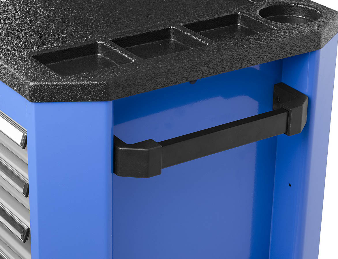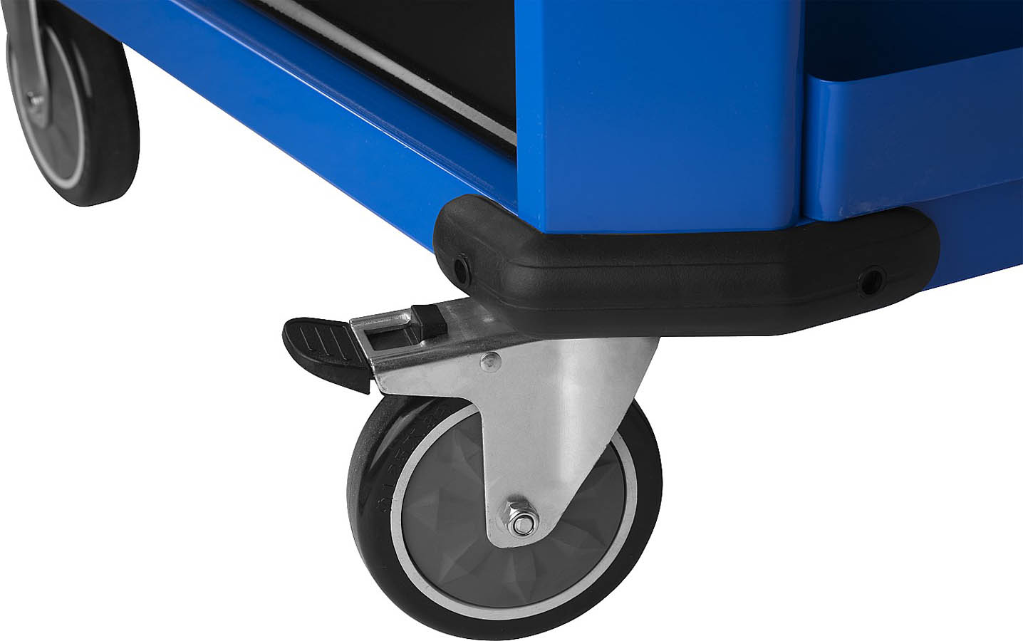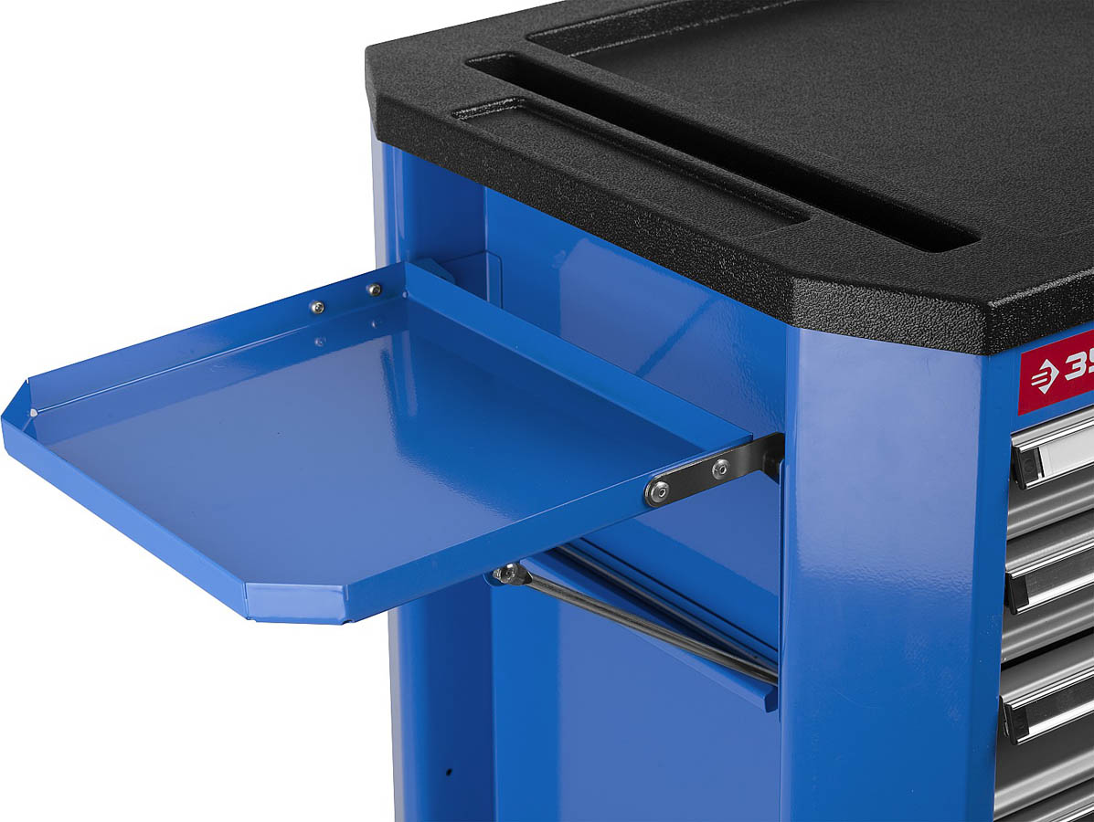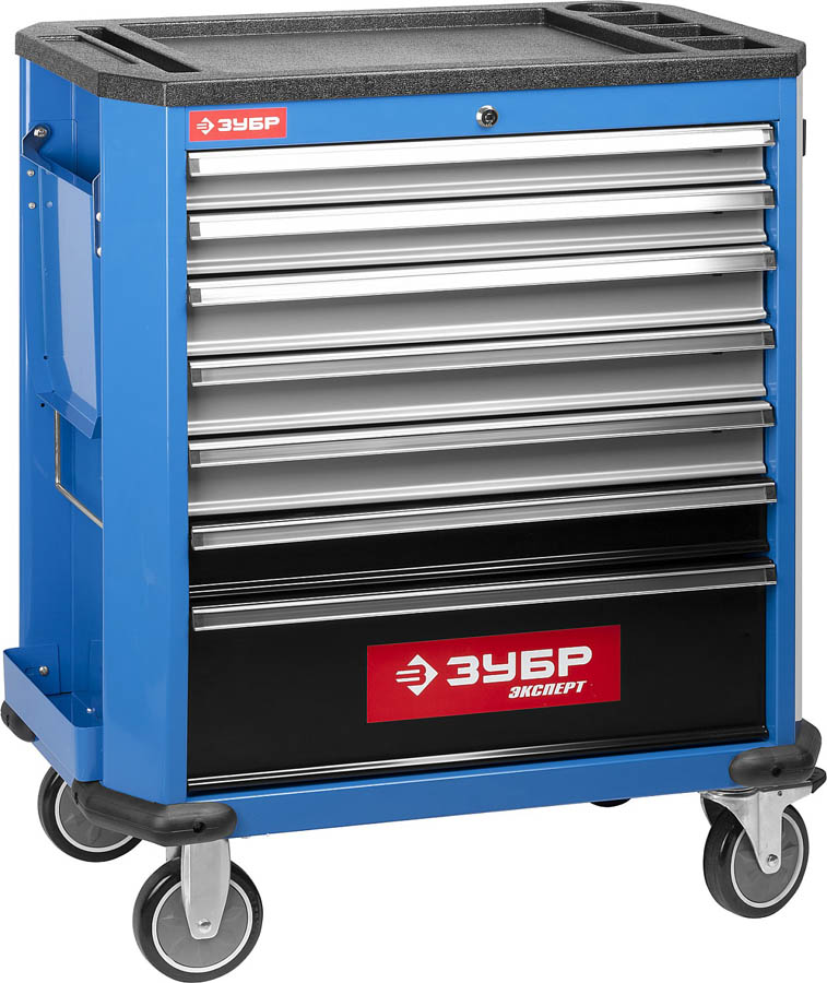 Тележка инструментальная ЗУБР 38903-7, используется для организованного хранение инструмента. Профессиональная тележка позволит Вам комфортно организовать рабочее место с легким доступом ко всем инструментам. При необходимости Вы можете транспортировать его, а так же использовать ключи для безопасности. Система BBS. Максимальная нагрузка 300 кг. Центральный замок. 2 ключа в комплекте. Размер колес 5'' х 2''. Толщина металла 1 мм. Противоскользящие коврики в каждом ящике.
