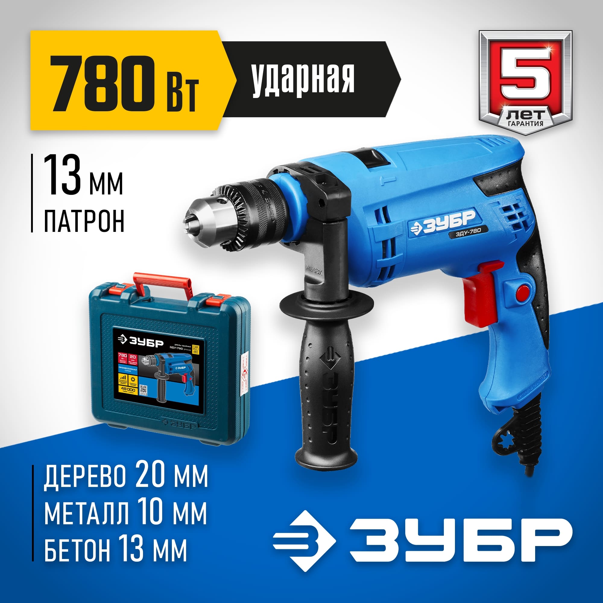 ЗУБР 780 Вт, кейс, дрель ударная ЗДУ-780 ЭРКМ2 Профессионал