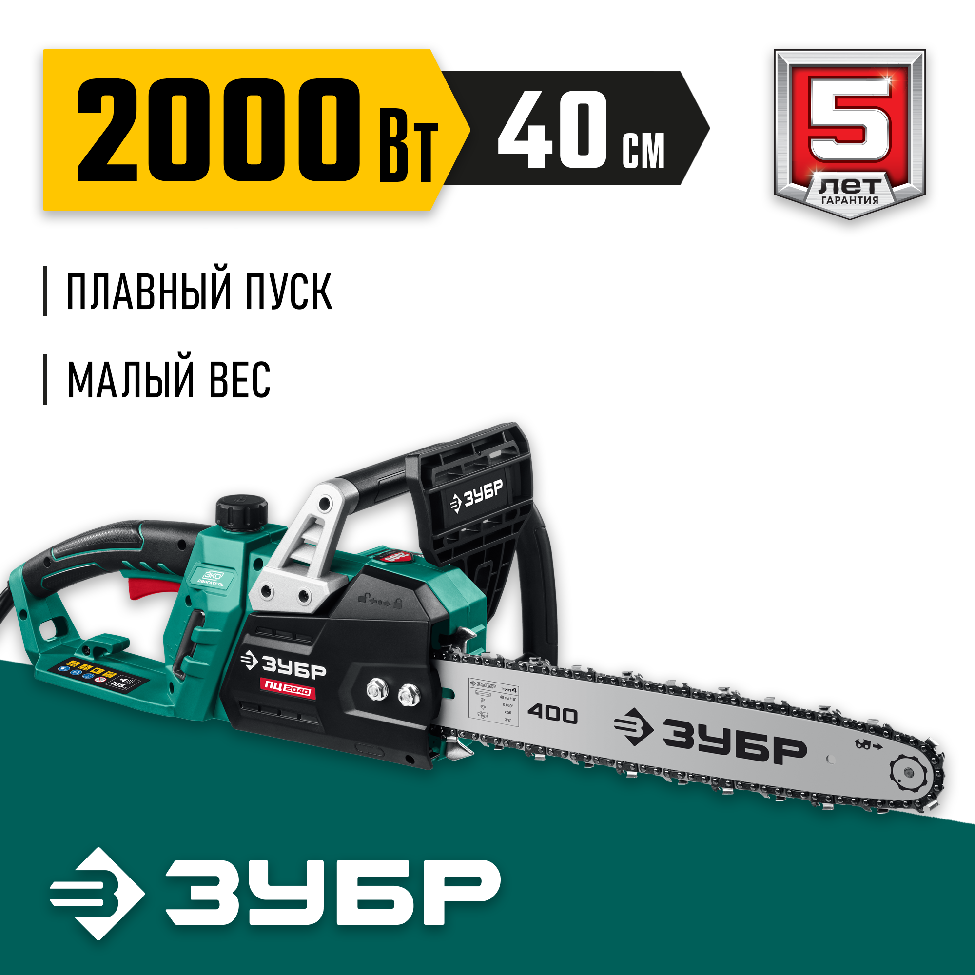 ЗУБР 2000 Вт, 40 см шина, пила цепная электрическая ПЦ-2040 Мастер