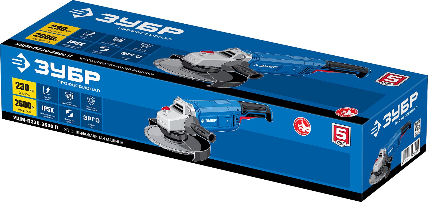 ЗУБР 2600 Вт, 230 мм, углошлифовальная машина (болгарка) УШМ-П230-2600 П Профессионал