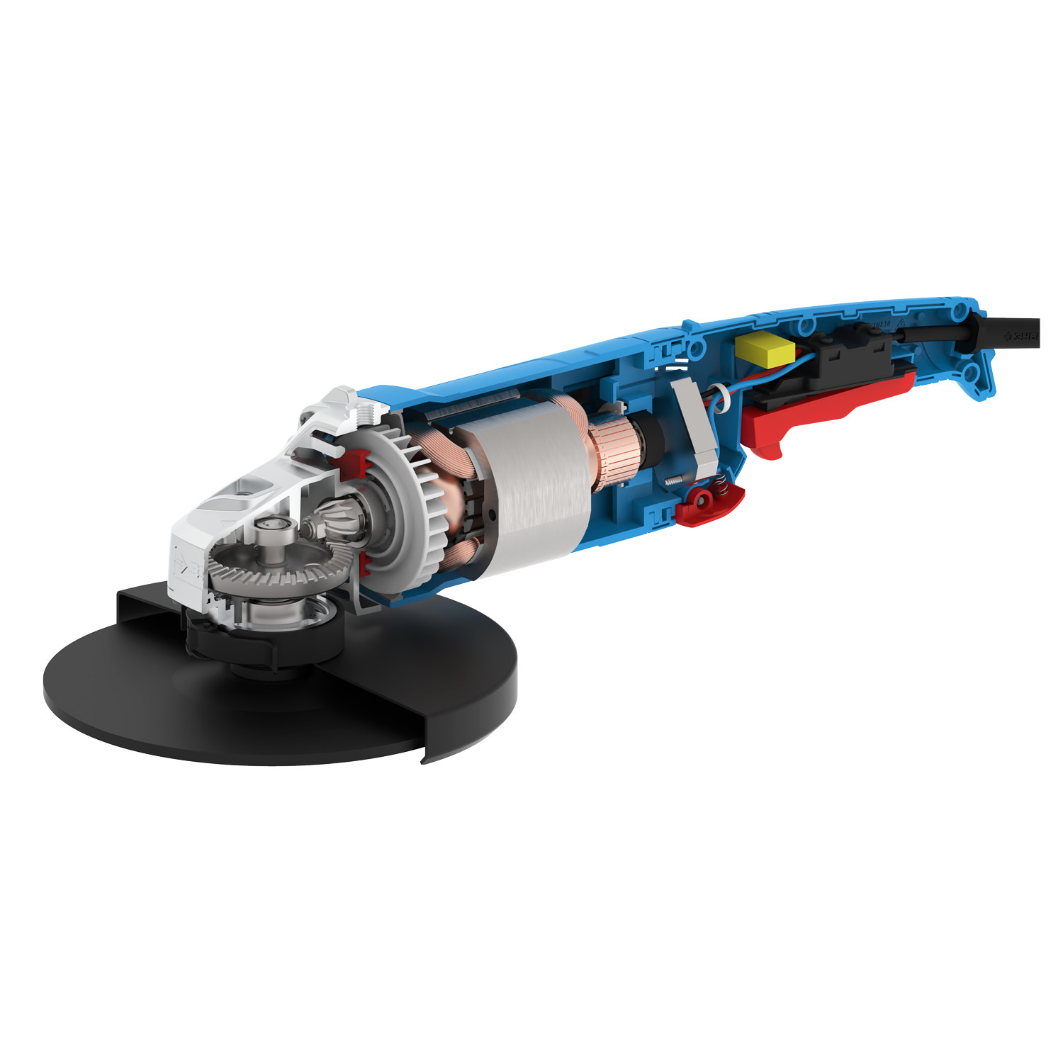 Угловая шлифмашина ЗУБР УШМ-П230-2600 П, предназначена для зачистки, шлифовки и резки металлов, резки бетона и камня при установке соответствующих шлифовальных, отрезных, алмазных кругов. Изделие с поистине неограниченными возможностями. Благодаря наибольшей на рынке мощности в 2600 Вт и максимально надежной конструкции она способна с легкостью выполнять любую работу - от резки металла до штробления бетона. Система плавного пуска позволяет раскручивать мощный двигатель без рывка и пусковой перегрузки. Поворотная с шагом 90° голова позволяет настроить изделие под левую руку или для резки. Широкий эргономичный выключатель с пылезащитой, блокировкой непреднамеренного включения, а также фиксацией во включенном положении. Быстрый доступ к щеткам для замены. Надежный хват благодаря основной и дополнительной рукояткам с мягкими накладками. Три места крепления дополнительной рукоятки для удобного хвата. Кабель питания с увеличенной длиной 3м в резиновой изоляции.