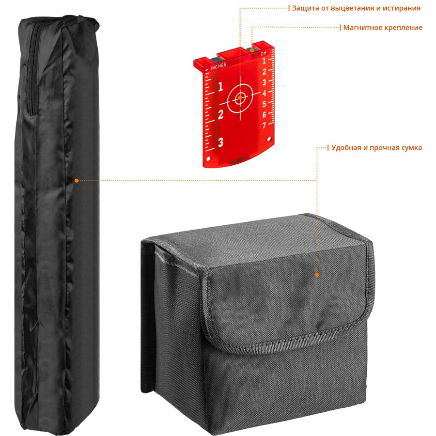 Лазерный уровень построитель плоскостей ЗУБР 34907-2, предназначен для генерирования горизонтальной, вертикальной и перпендикулярных линий при проведении разметочных работ. Прибор позволяет выполнить разметку одному человеку, что значительно повышает производительность труда. Четыре режима проецирования линий: 2D построение, две плоскости по 360 градусов, две фиксированные перпендикулярных линии, две самовыравнивающиеся перпендикулярные линии. Функция автовыравнивания не требует настройки, обеспечивая повышенную точность при разметке. Диапазон компенсирования ± 4° для установки на неровную поверхность. Световая индикация при превышении порогового значения угла самовыравнивания. Возможность блокировки компенсатора для защиты маятниковой системы от механических повреждений. Магнитный демпфер позволяет быстро гасить колебания. Работа с детектором при высокой освещенности. Работа от батареек и блока питания AC/DC. Предусмотрена установка на штатив (резьба 1/4'' и 5/8).